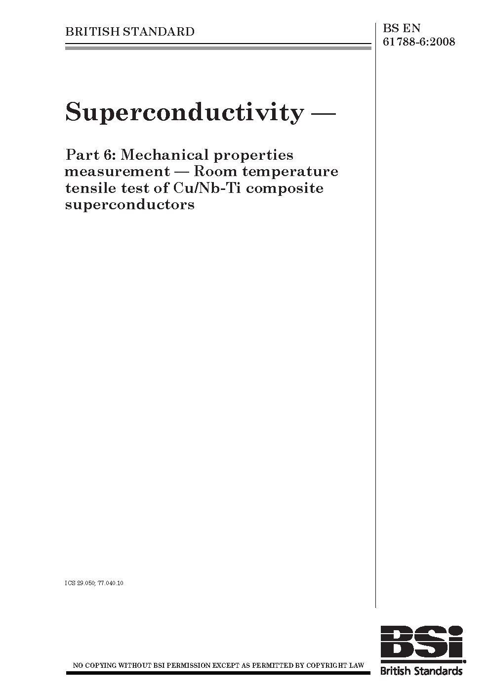 Superconductivity Mechanical properties measurement. Room temperature tensile test of Cu/Nb-Ti composite superconductors