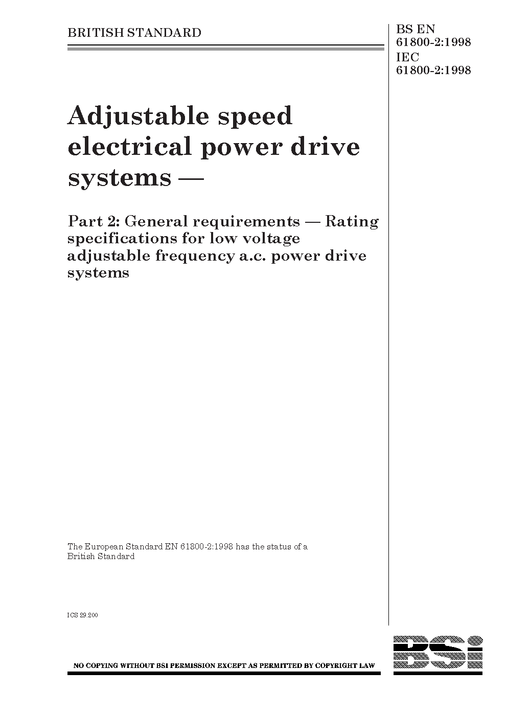 Adjustable speed electrical power drive systems General requirements. Rating specifications for low voltage adjustable a.c.