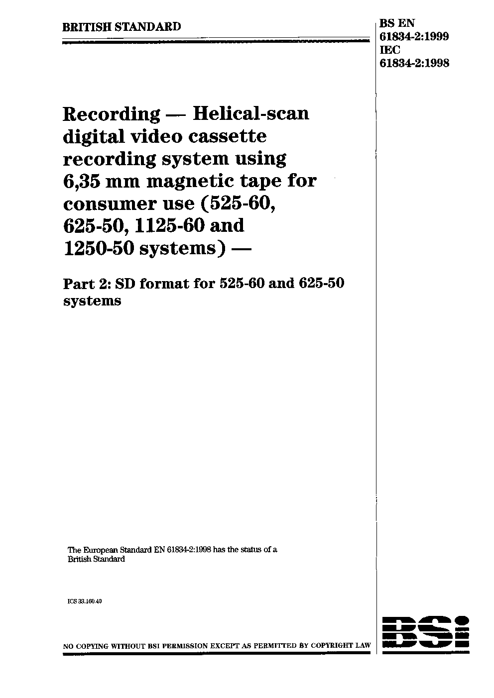 BS EN 61834-2:1999