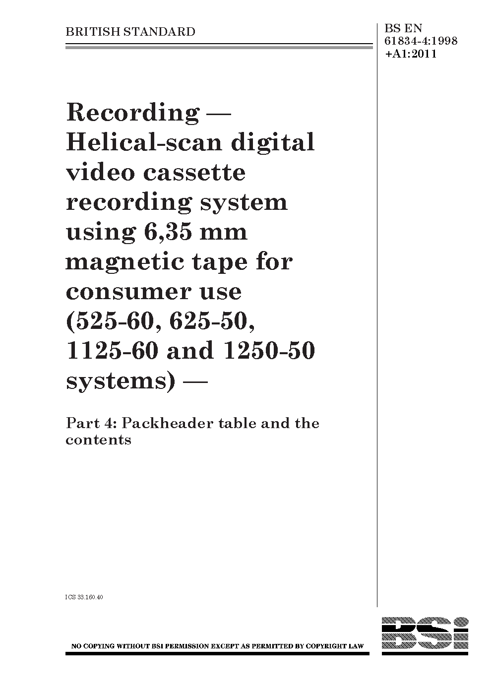 BS EN 61834-4:1998+A1:2011