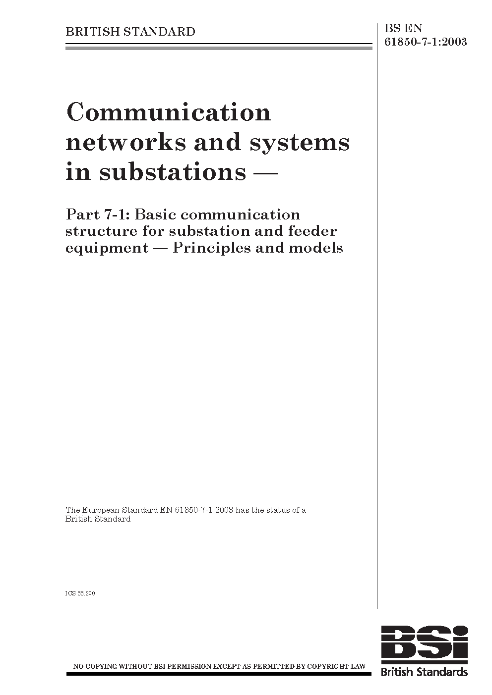 Communication networks and systems for power utility automation Basic communication structure. Principles models