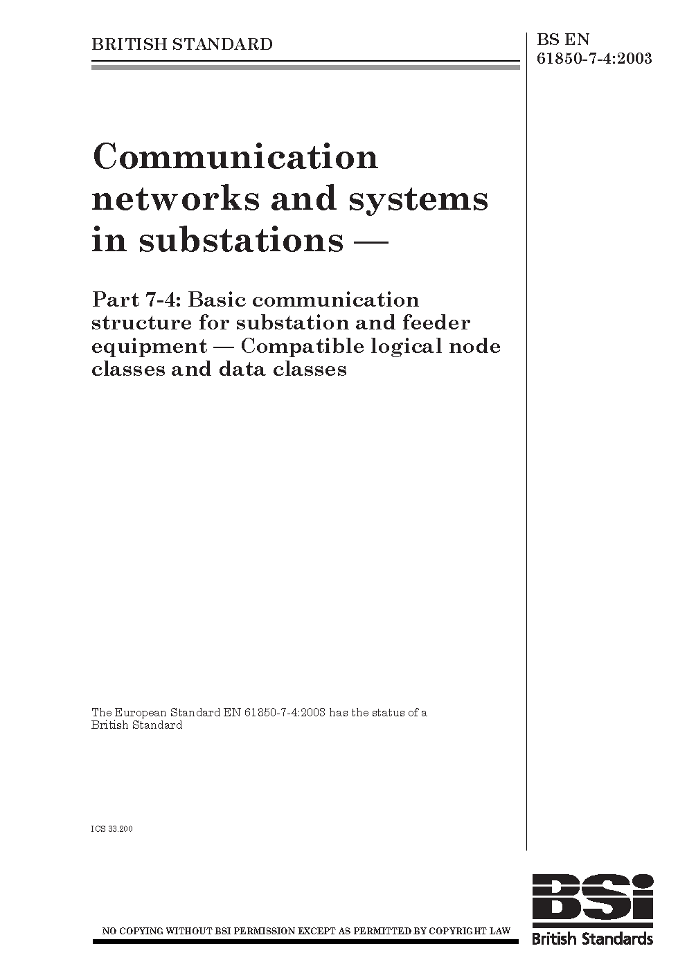 Communication networks and systems for power utility automation Basic communication structure. Compatible logical node classes data object