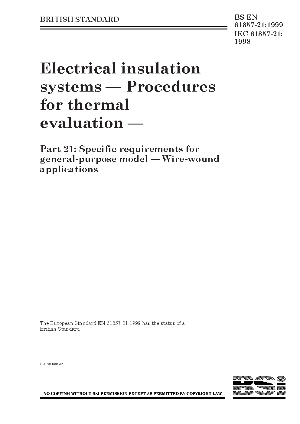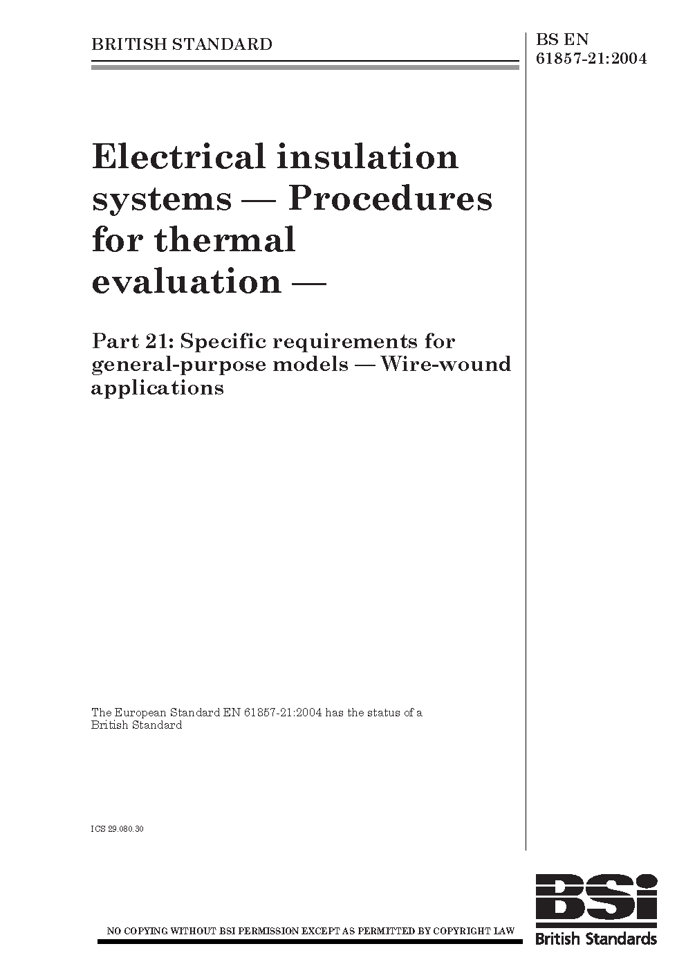 Electrical insulation systems. Procedures for thermal evaluation Specific requirements general-purpose models. Wire-wound applications