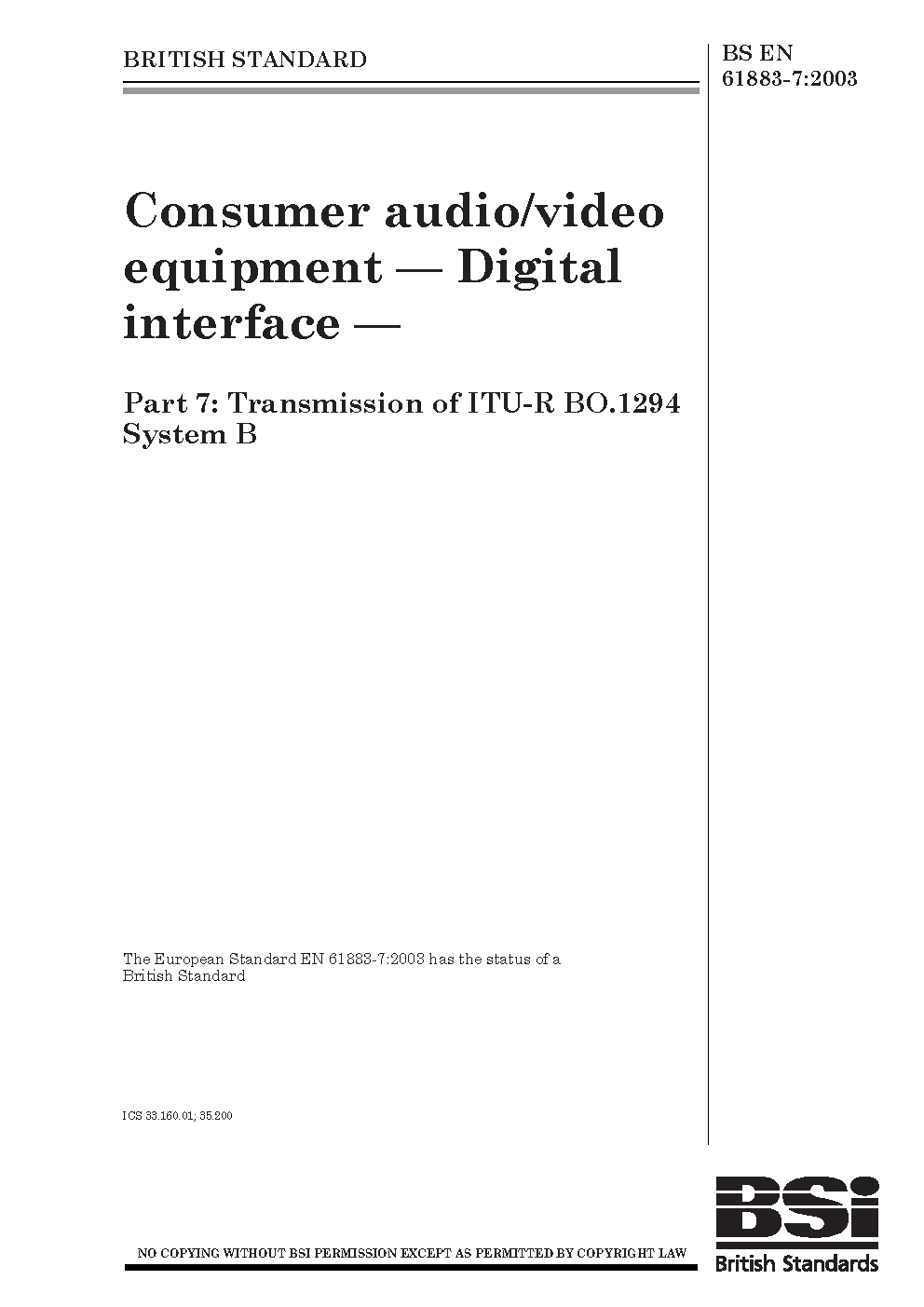 Consumer audio/video equipment. Digital interface Transmission of ITU-R BO.1294 System B