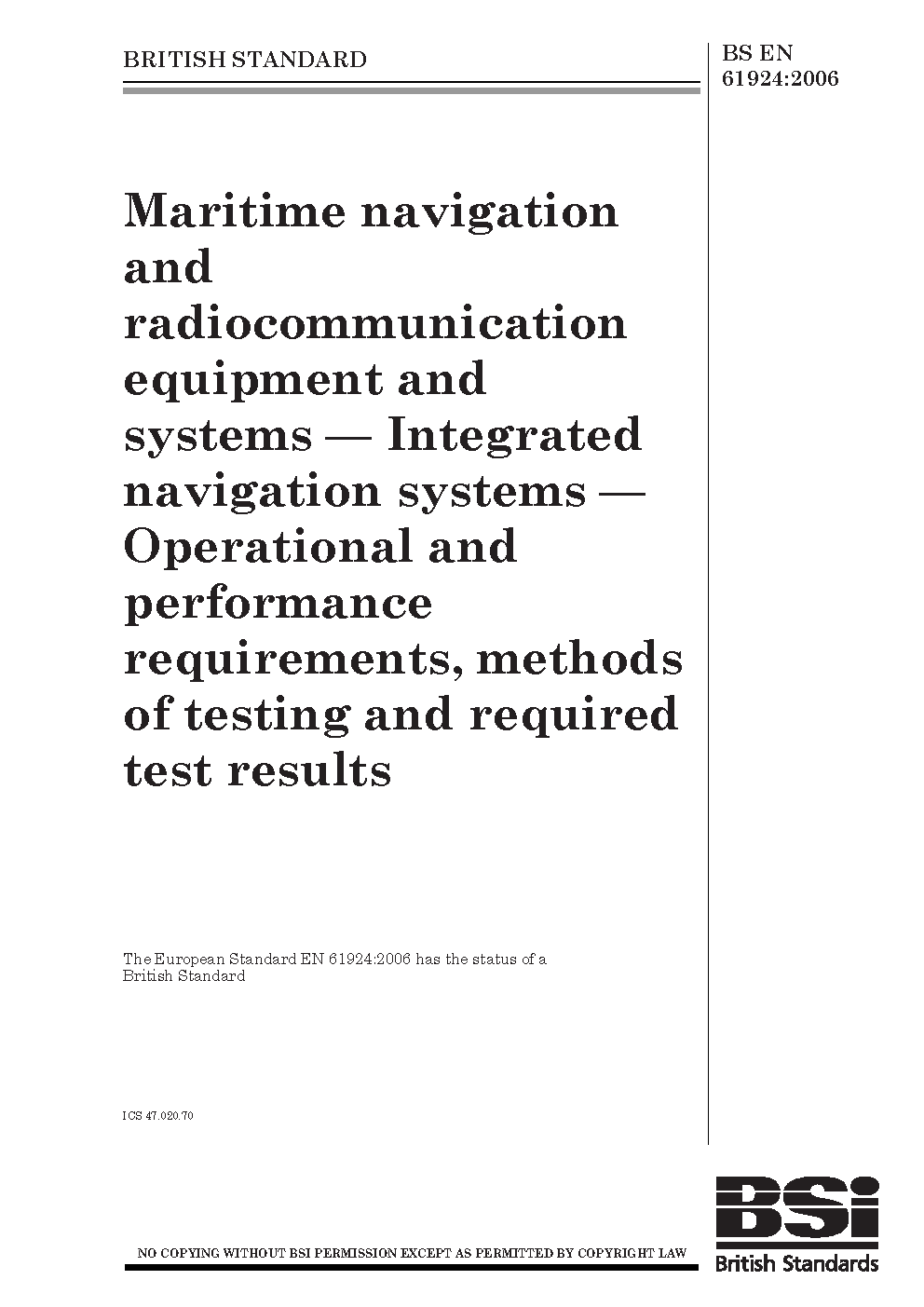 Maritime navigation and radiocommunication equipment and systems. Integrated navigation systems. Operational and performance requirements, methods of testing and required test results