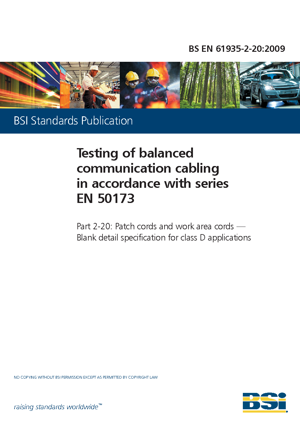 Testing of balanced communication cabling in accordance with series EN 50173 Patch cords and work area cords. Blank detail specification for class D applications
