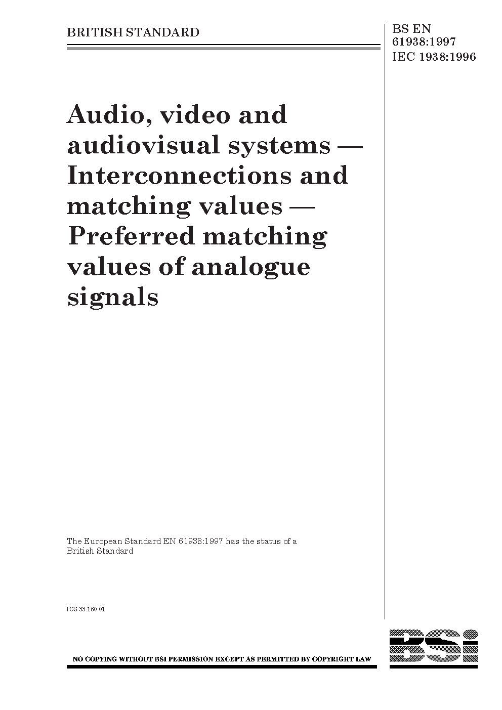 Multimedia systems. Guide to the recommended characteristics of analogue interfaces to achieve interoperability