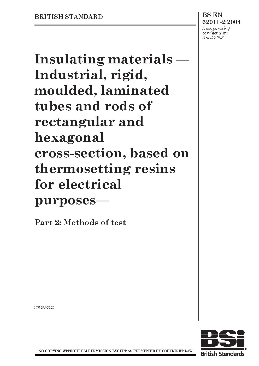 Insulating materials. Industrial, rigid, moulded, laminated tubes and rods of rectangular hexagonal cross-section, based on thermosetting resins for electrical purposes Methods test