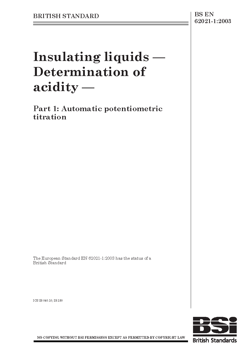Insulating oils;Quality control;Acidity;Mineral oils;Chemical analysis and testing;Acidimetry;Oils;Liquid electrical insulating materials;Potentiometric methods;Oxidation resistance;Volumetric analysis;Electrical insulating materials