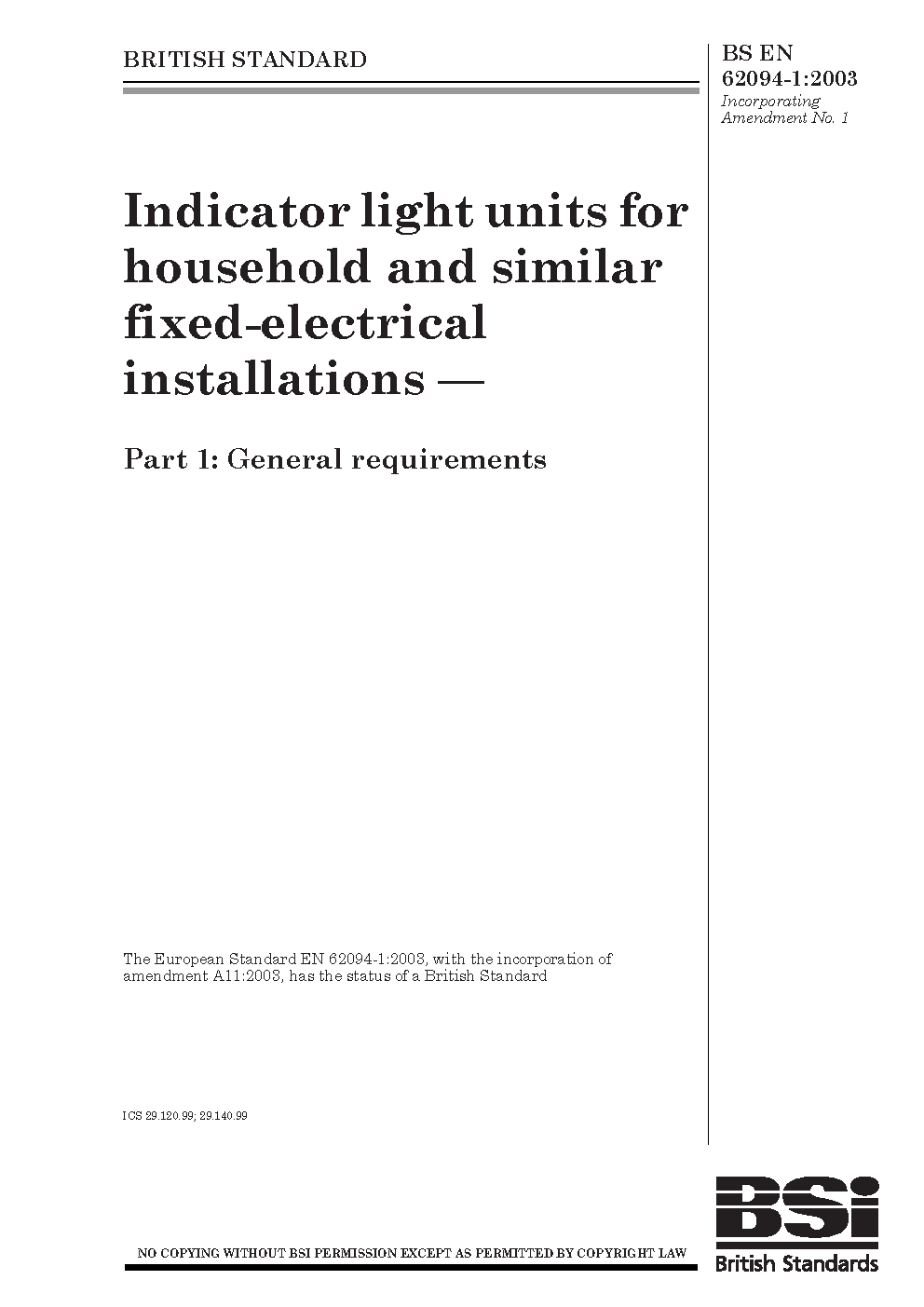 Indicator light units for household and similar fixed-electrical installations General requirements