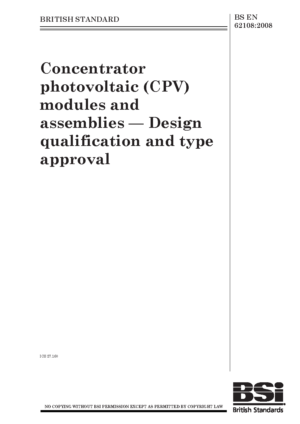 Concentrator photovoltaic (CPV) modules and assemblies. Design qualification and type approval