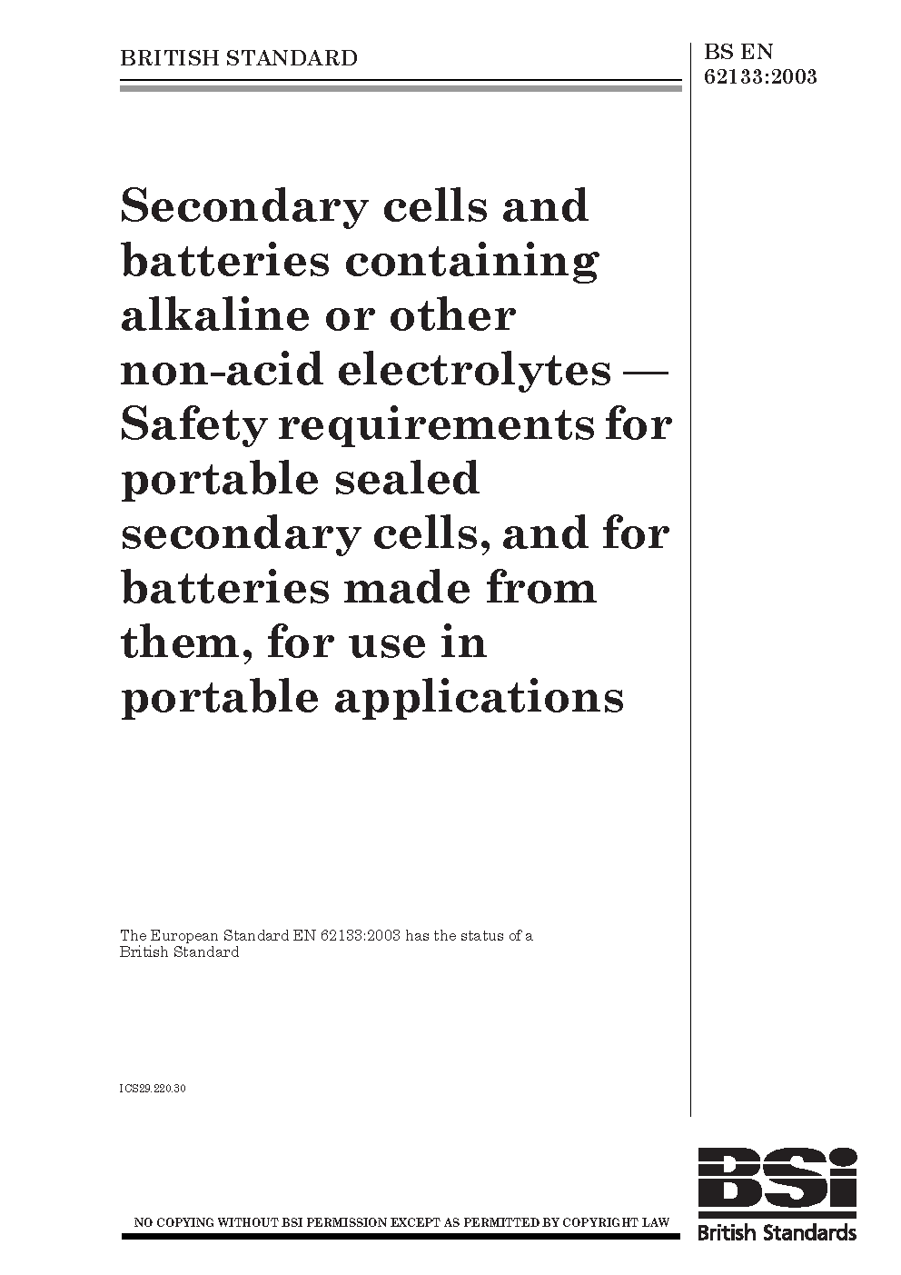 Secondary cells and batteries containing alkaline or other non-acid electrolytes. Safety requirements for portable sealed secondary cells, and for batteries made from them, for use in portable applications