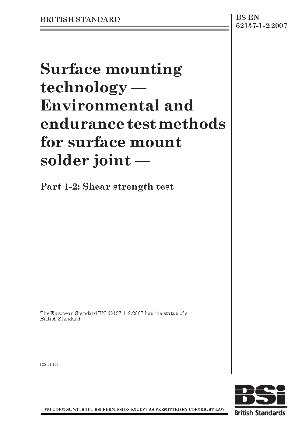 Surface mounting technology. Environmental and endurance test methods for surface mount solder joint Shear strength