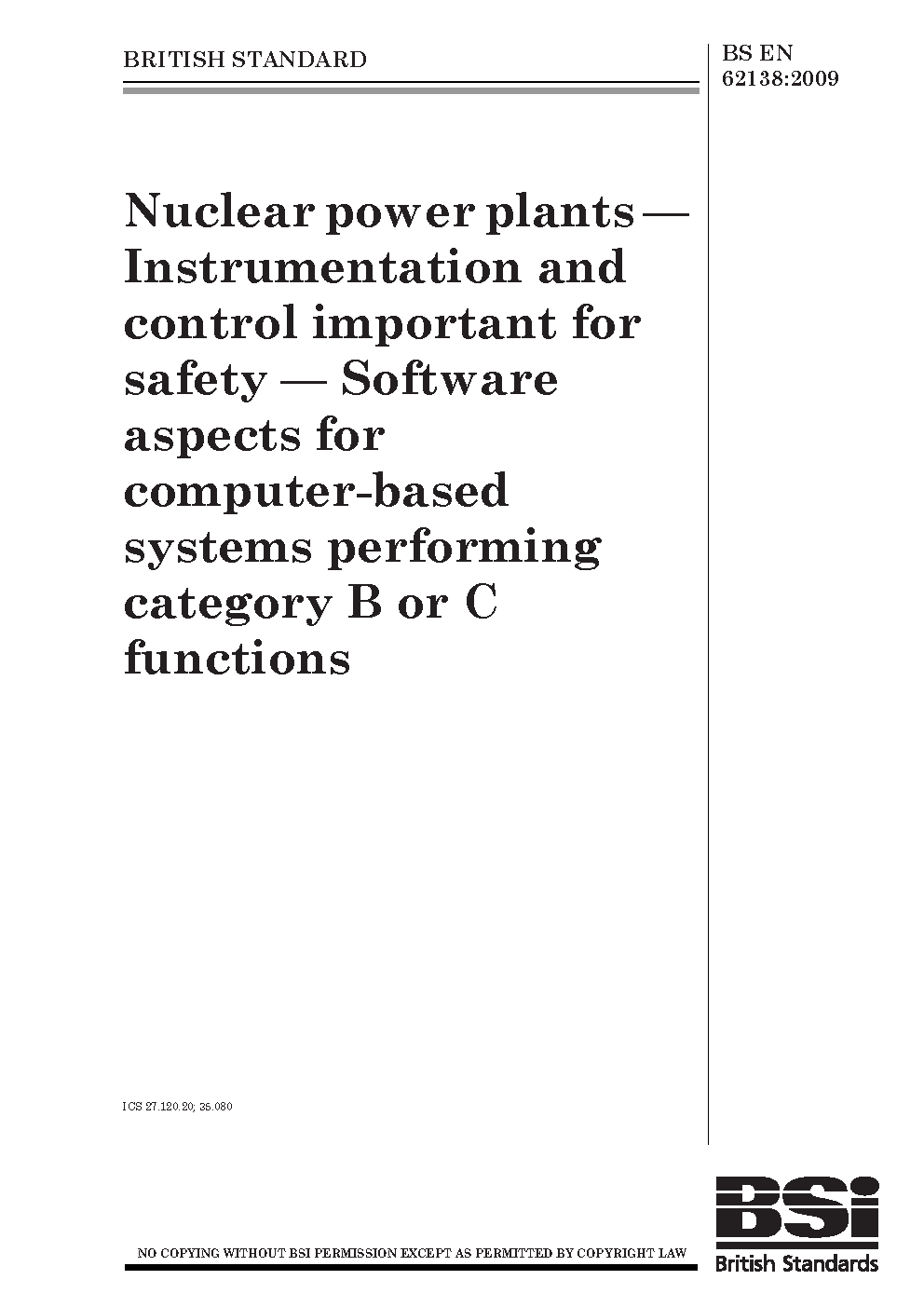 Nuclear power plants. Instrumentation and control important for safety. Software aspects for computer-based systems performing category B or C functions