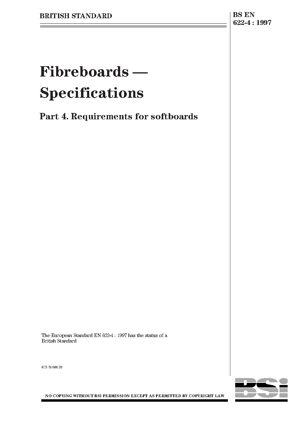 Fibreboards. Specifications Requirements for softboards