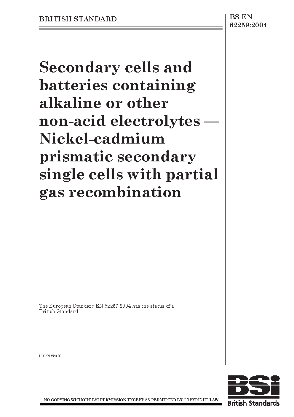 Acceptance (approval);Marking;Prismatic shape;Nickel-cadmium batteries;Designations;Mechanical testing;Storage batteries;Dimensions;Alkaline batteries;Electrical testing;Gases;Electric cells