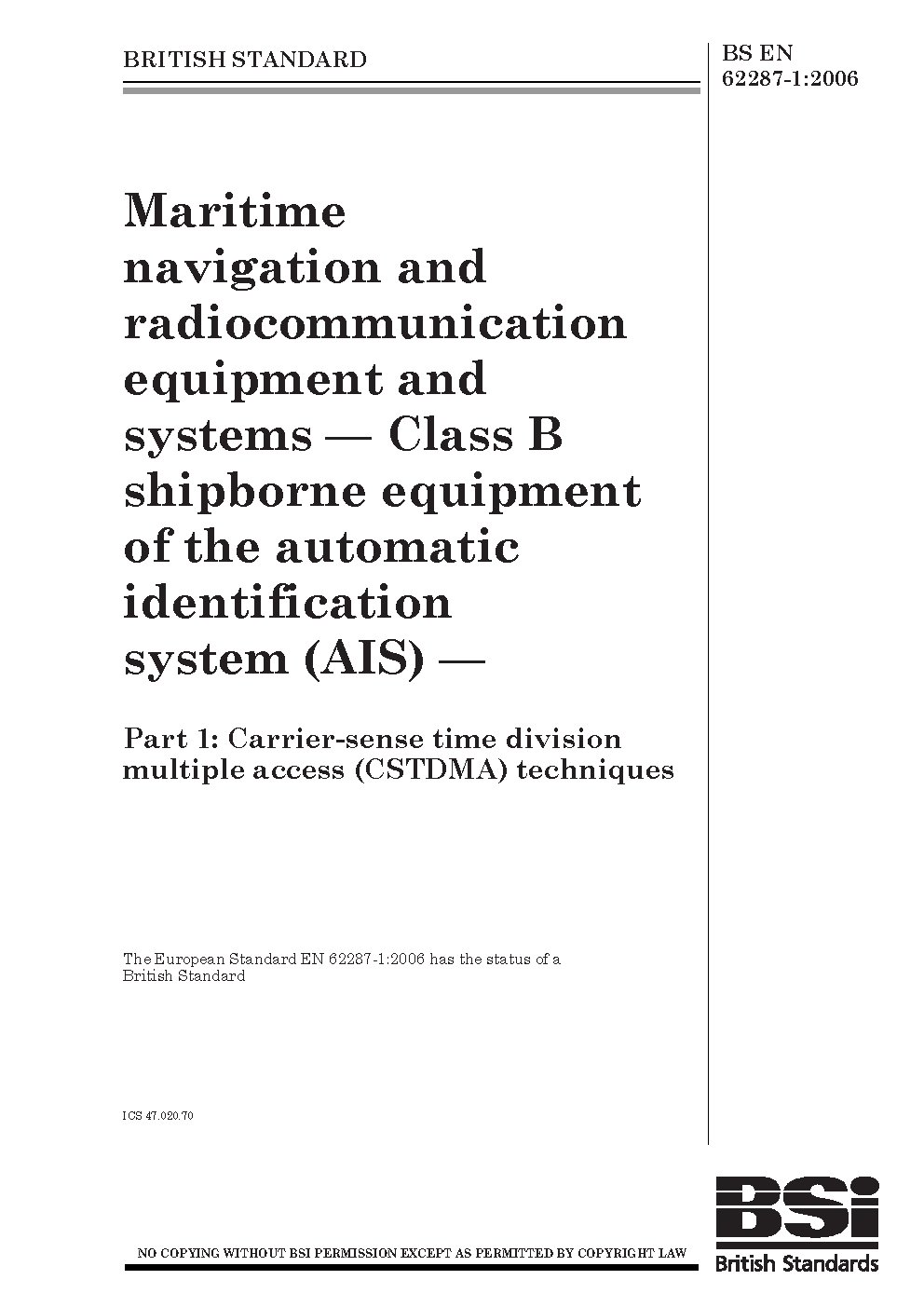 Maritime navigation and radiocommunication equipment systems. Class B shipborne of the automatic identification system (AIS) Carrier-sense time division multiple access (CSTDMA) techniques