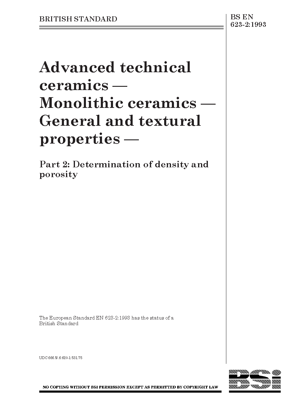 Advanced technical ceramics. Monolithic General and textural properties. Determination of density porosity