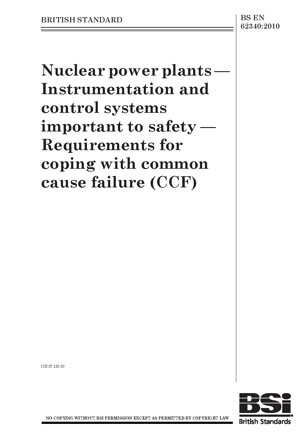 Nuclear power plants. Instrumentation and control systems important to safety. Requirements for coping with common cause failure (CCF)