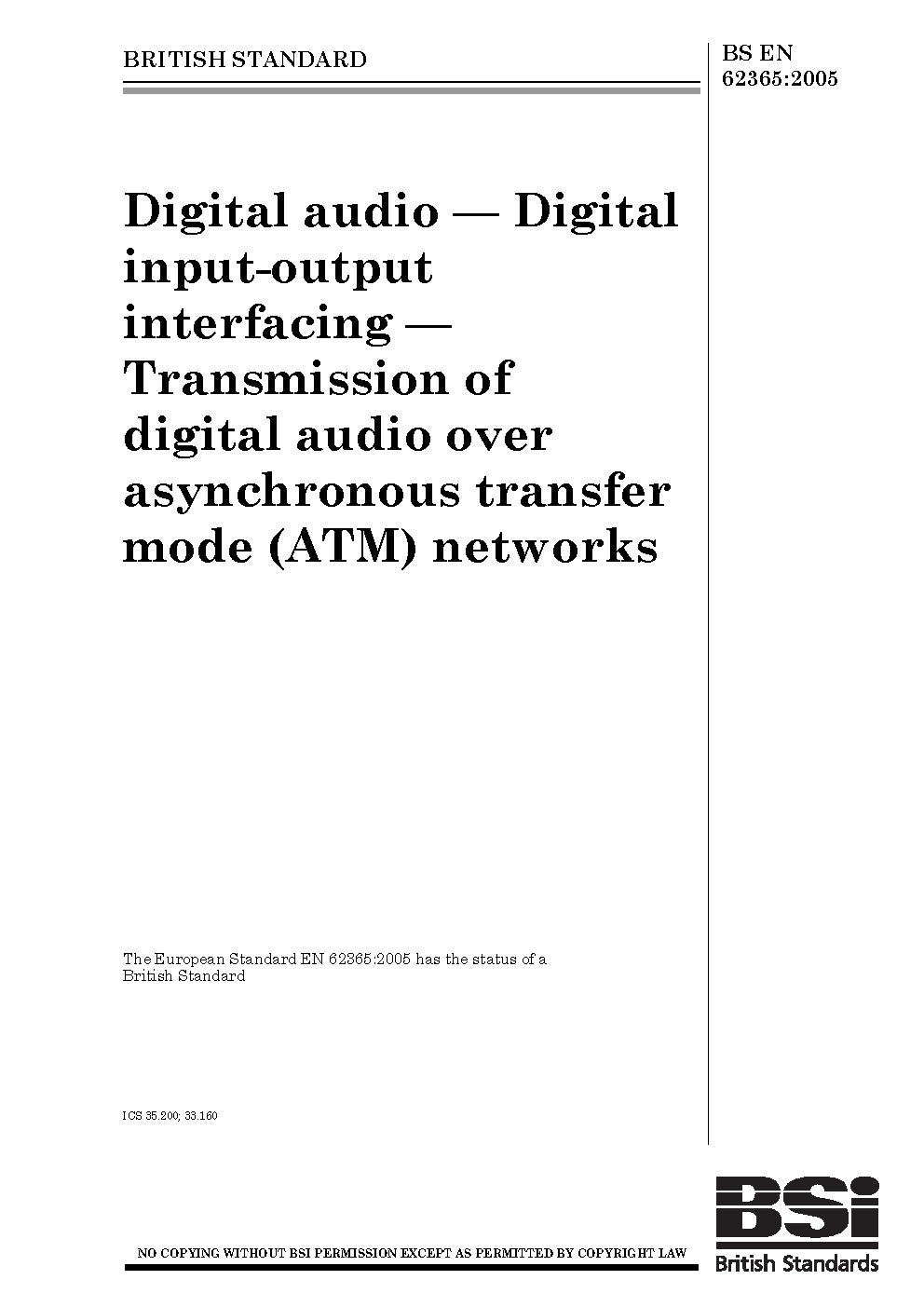 Digital audio. Digital input-output interfacing. Transmission of digital audio over asynchronous transfer mode (ATM) networks