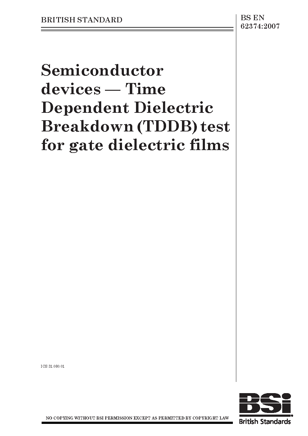 Semiconductor devices. Time dependent dielectric breakdown (TDDB) test for gate dielectric films
