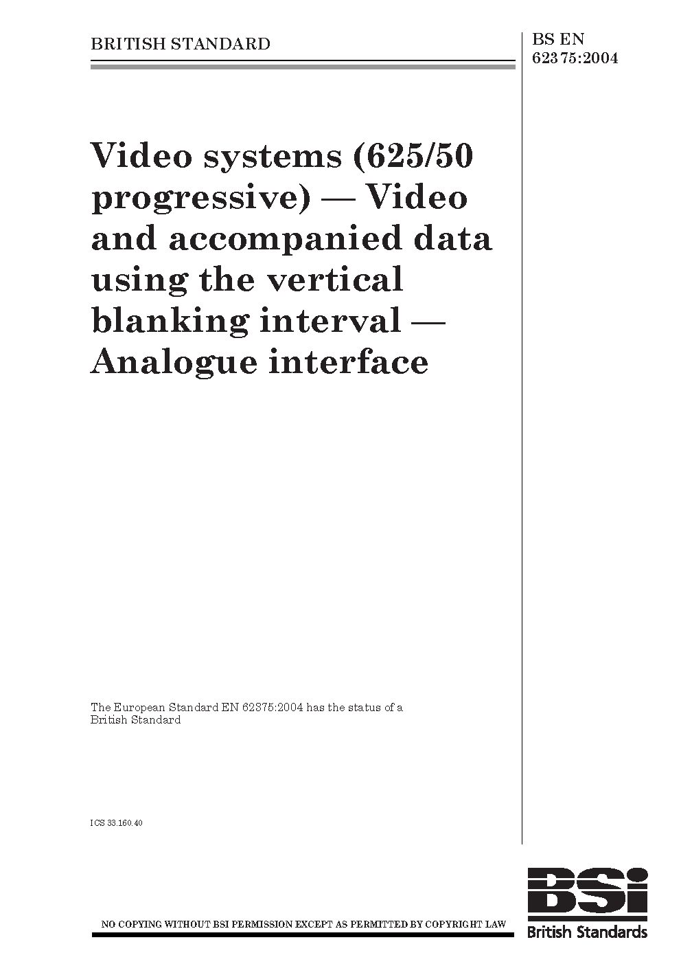 Video systems (625/50 progressive). Video and accompanied data using the vertical blanking interval. Analogue interface