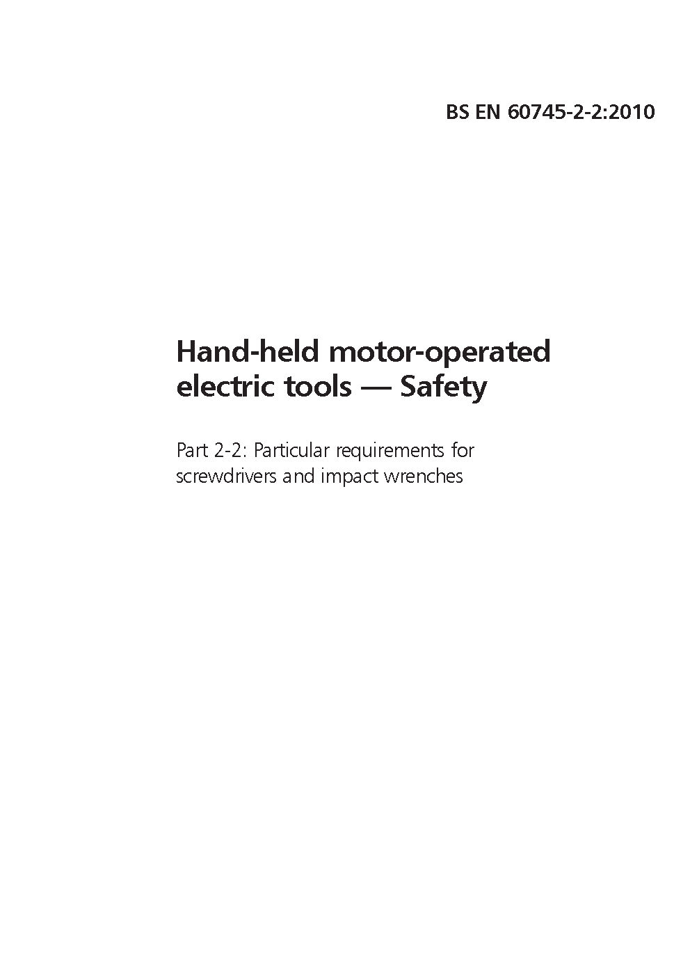 Electric motor-operated hand-held tools, transportable tools and lawn garden machinery. Safety Particular requirements for screwdrivers impact wrenches