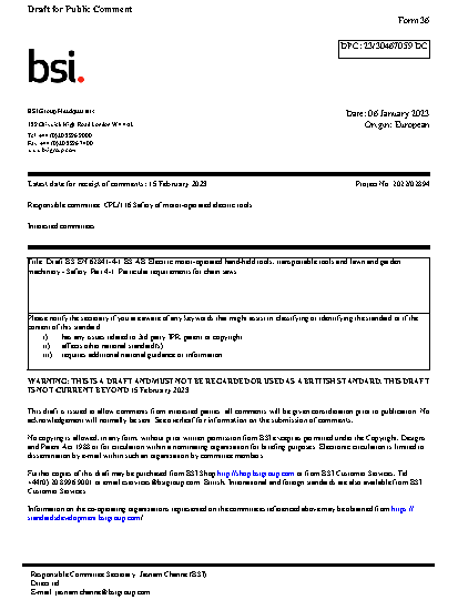 Electric Motor-Operated Hand-Held Tools, Transportable Tools and Lawn Garden Machinery. Safety Particular requirements for chain saws