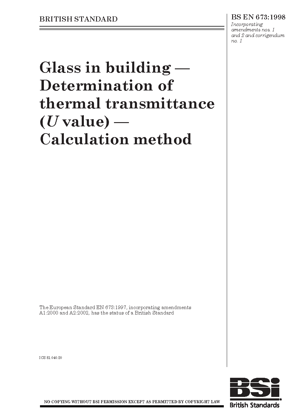 Glass in building. Determination of thermal transmittance (U value). Calculation method