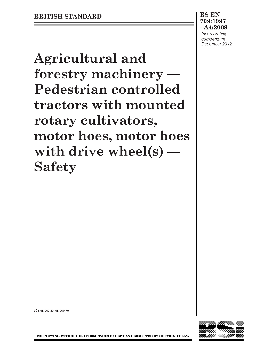 Agricultural and forestry machinery. Pedestrian controlled tractors with mounted rotary cultivators, motor hoes, motor hoes with drive wheel(s). Safety