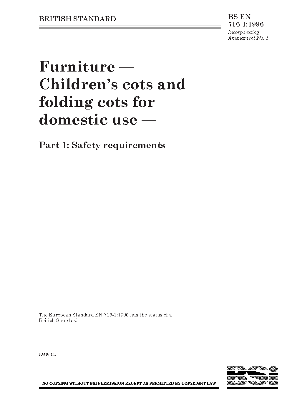 Furniture. Children's cots and folding for domestic use Safety requirements