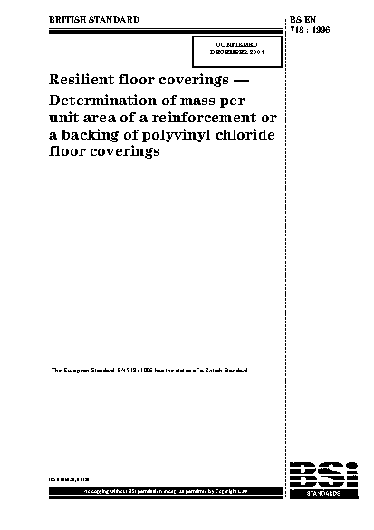 Resilient floor coverings. Determination of mass per unit area of a reinforcement or a backing of polyvinyl chloride floor coverings