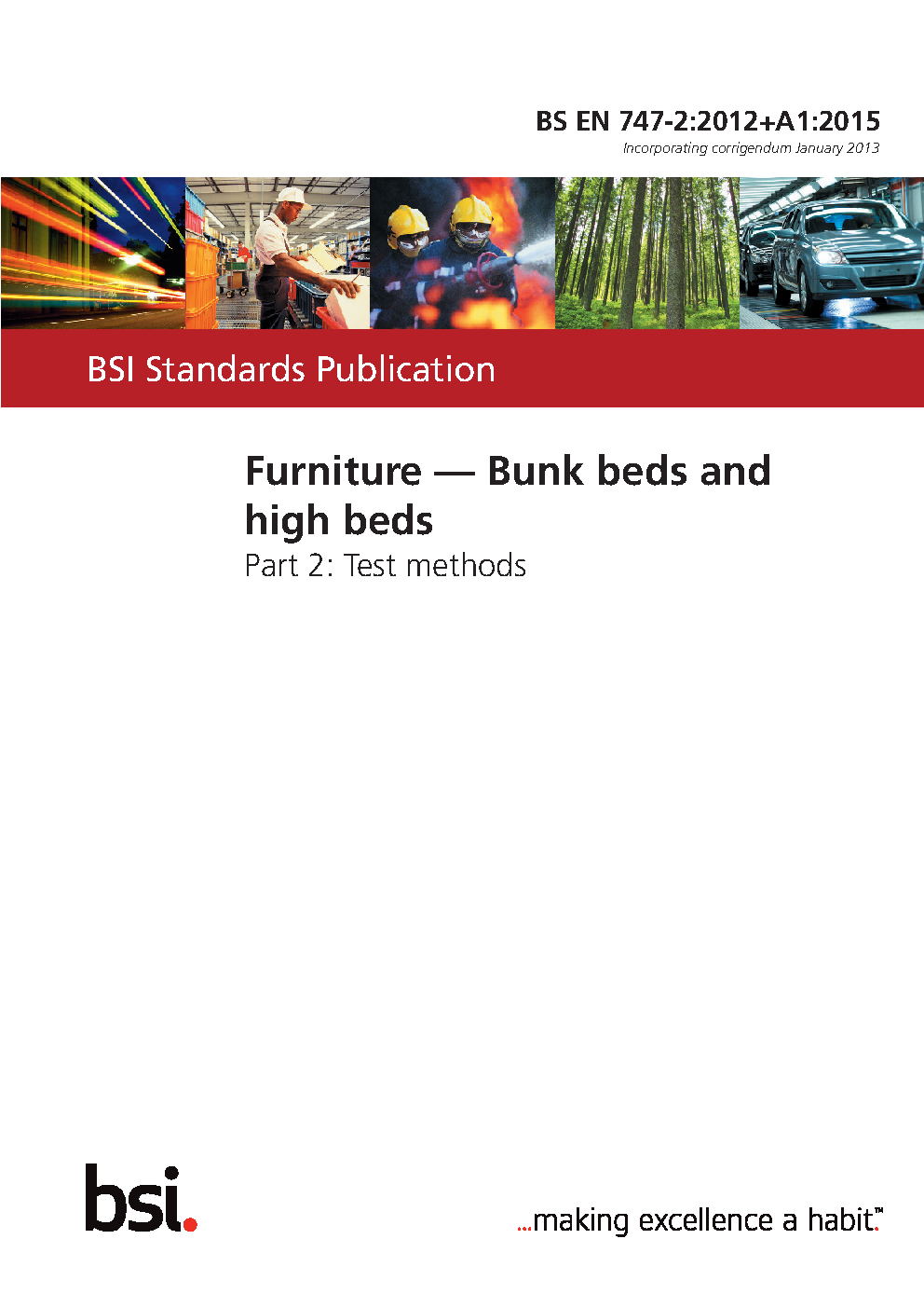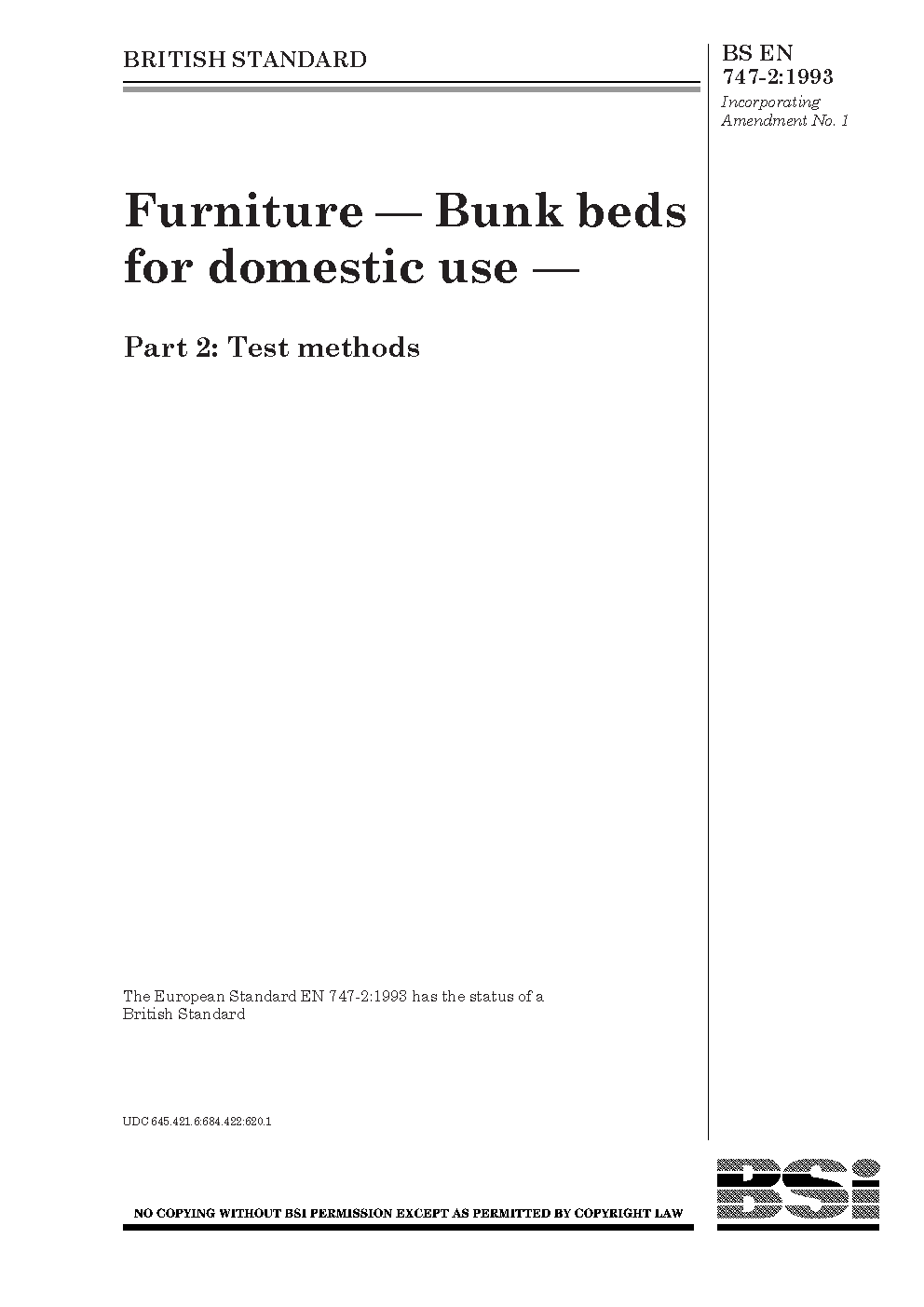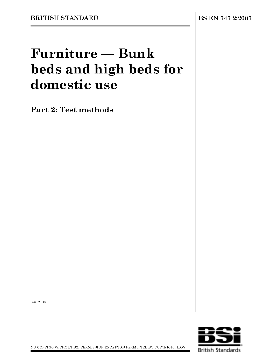 Furniture. Bunk beds and high for domestic use Test methods