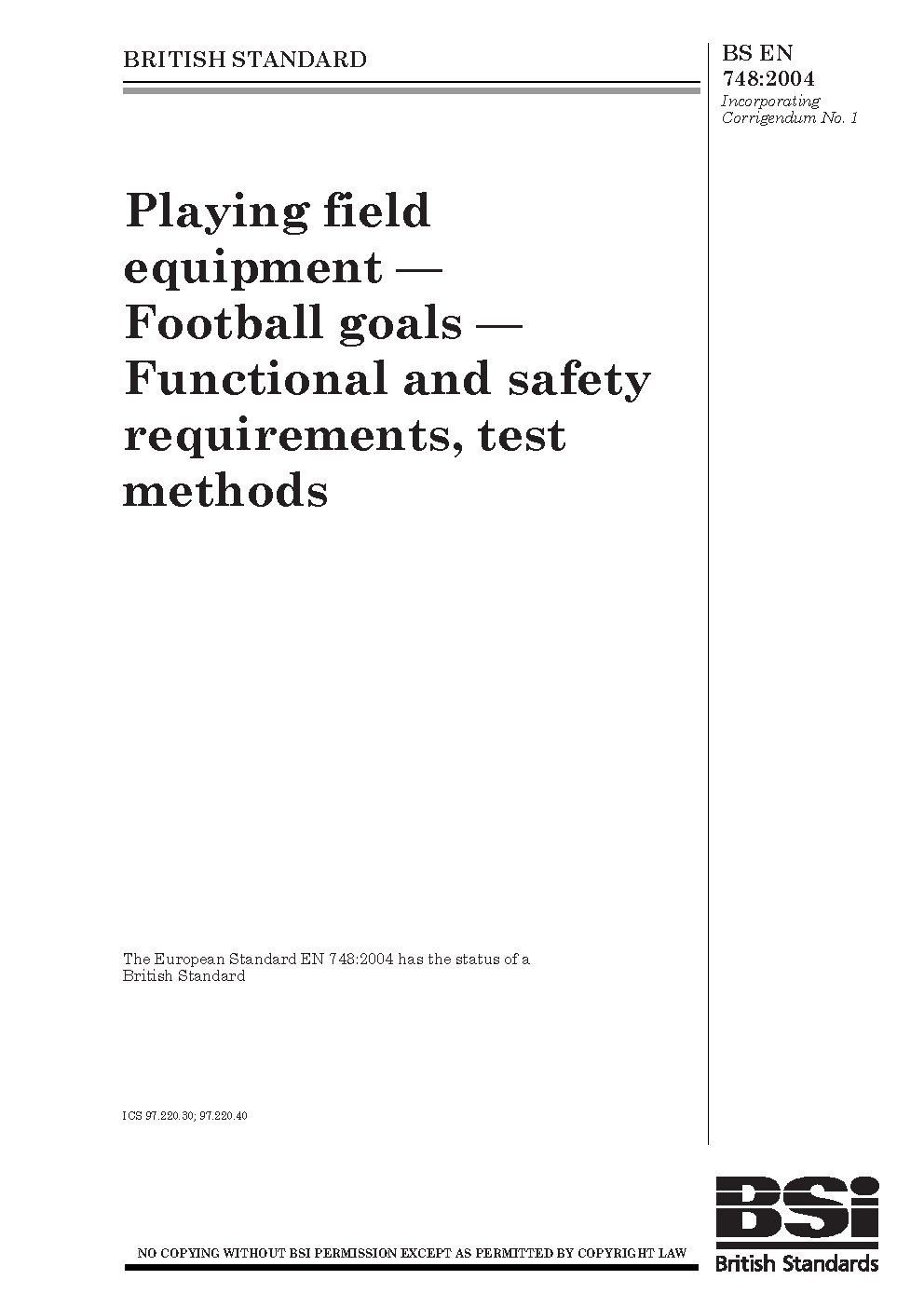 Playing field equipment. Football goals. Functional and safety requirements, test methods