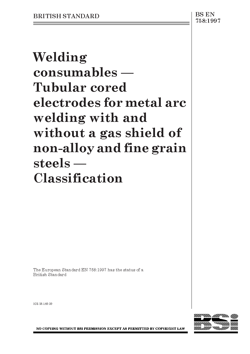 Welding consumables. Tubular cored electrodes for metal arc welding with and without a gas shield of non-alloy and fine grain steels. Classification