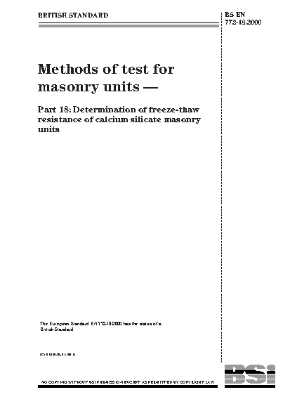 Methods of test for masonry units Determination freeze-thaw resistance calcium silicate