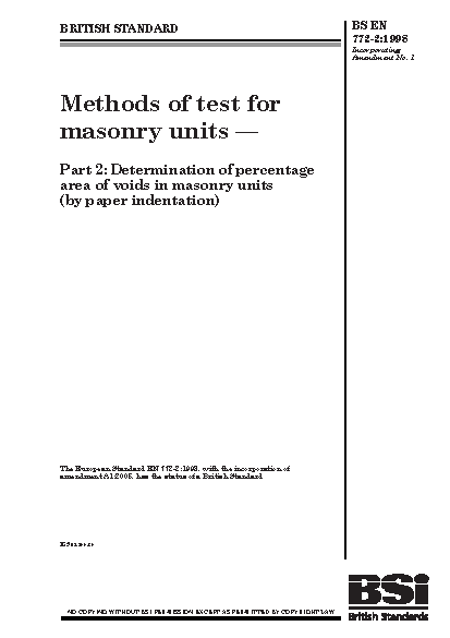 Methods of test for masonry units Determination percentage area voids in (by paper indentation)