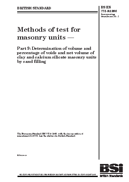 Methods of test for masonry units Determination volume and percentage voids net clay calcium silicate by sand filling