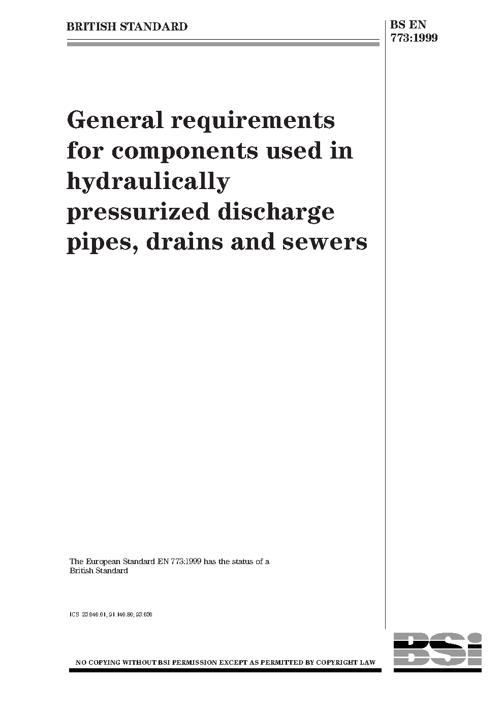 General requirements for components used in hydraulically pressurized discharge pipes, drains and sewers