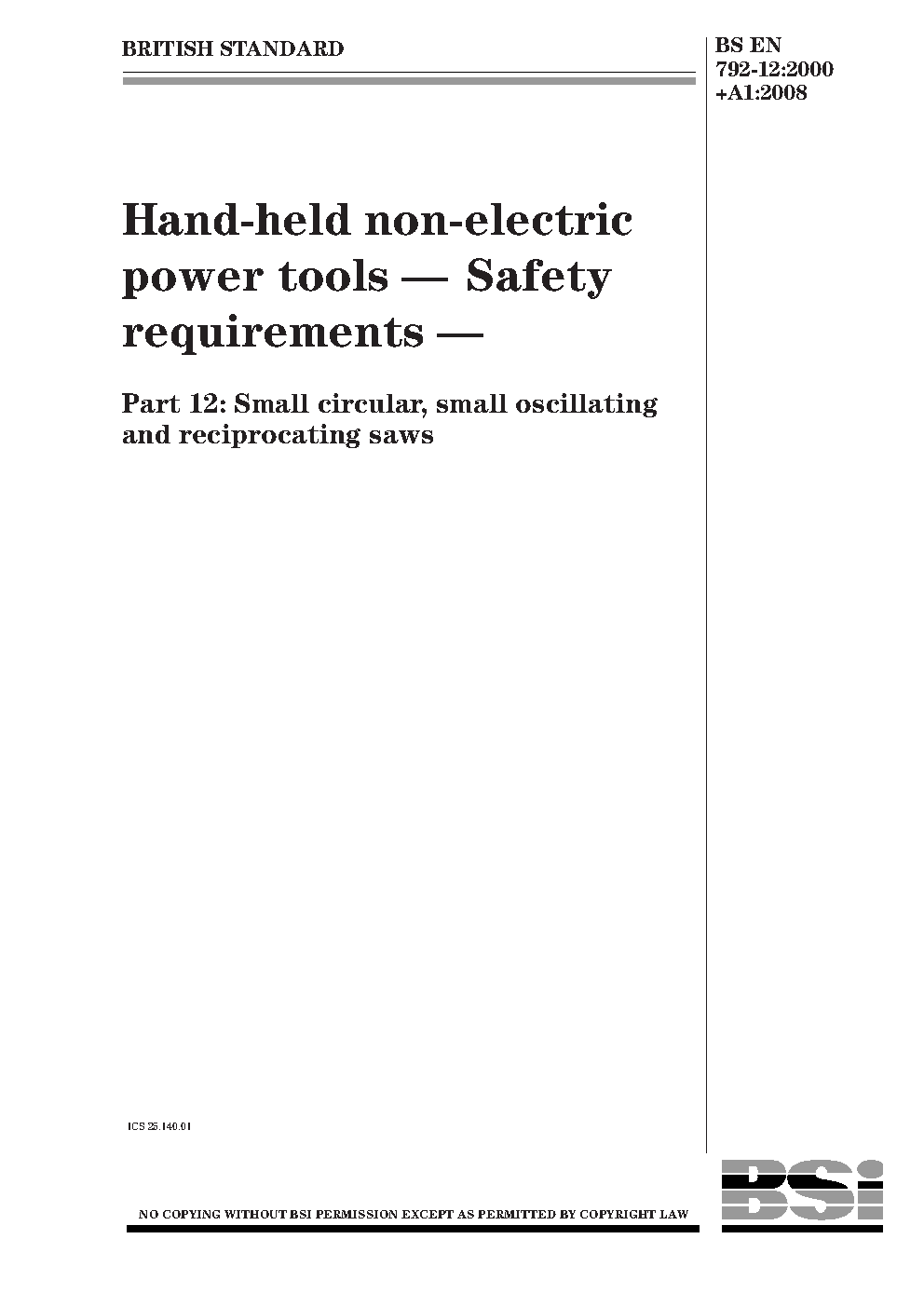 Hand-held non-electric power tools. Safety requirements Small circular, small oscillating and reciprocating saws