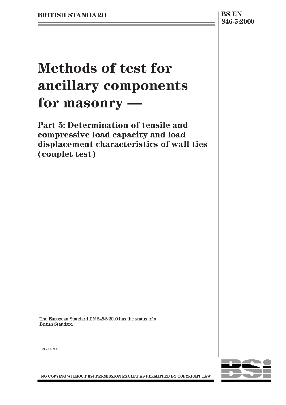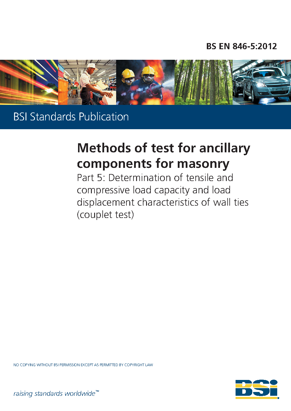 Methods of test for ancillary components masonry Determination tensile and compressive load capacity displacement characteristics wall ties (couplet test)