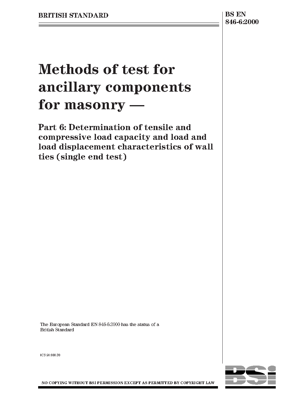 Methods of test for ancillary components masonry Determination tensile and compressive load capacity displacement characteristics wall ties (single end test)