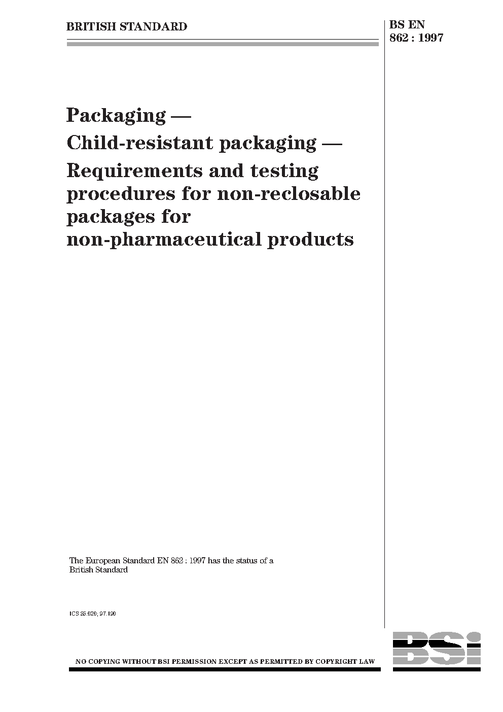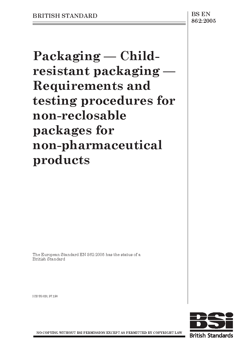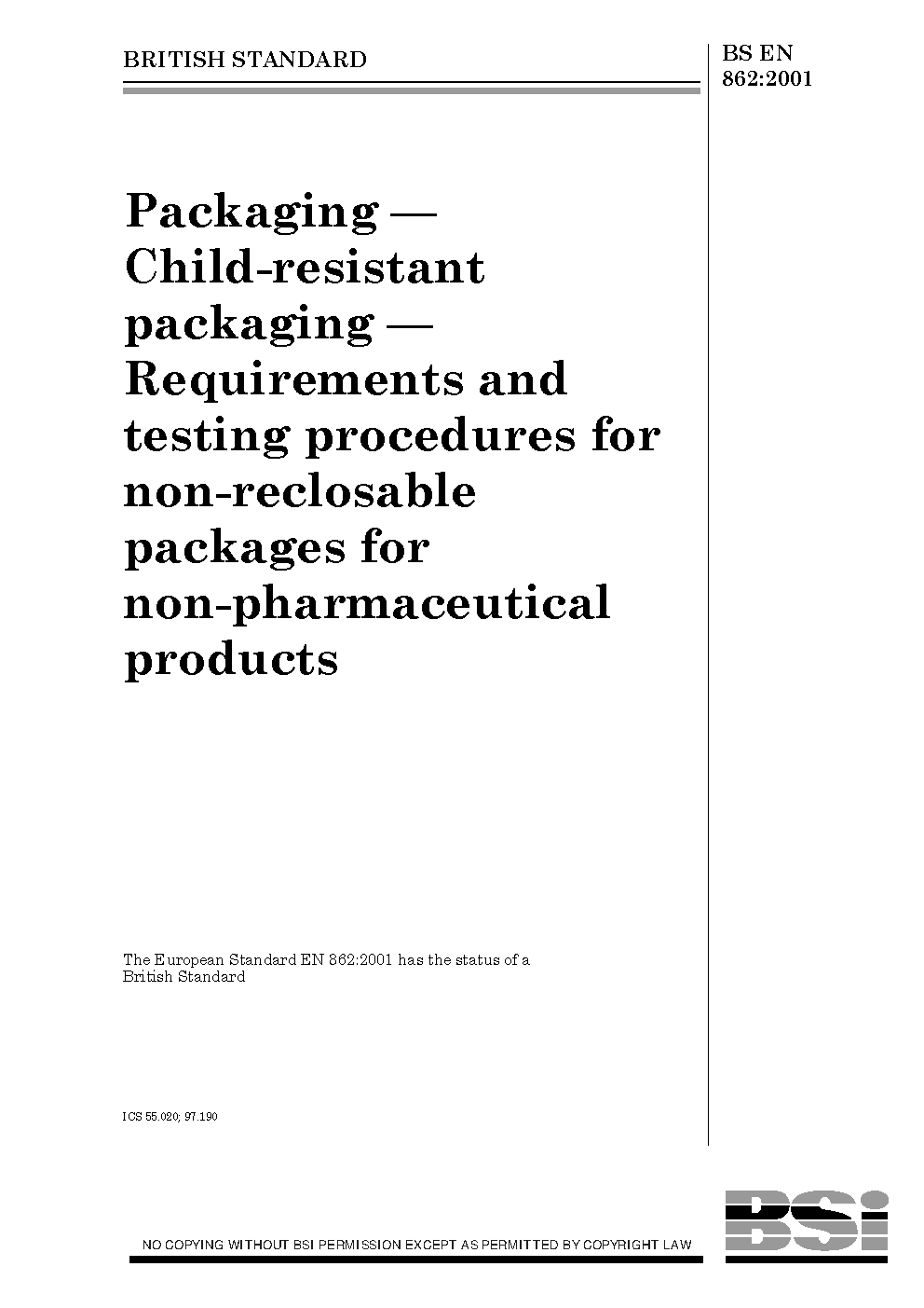 Packaging. Child resistant packaging. Requirements and testing procedures for non-reclosable packages for non-pharmaceutical products