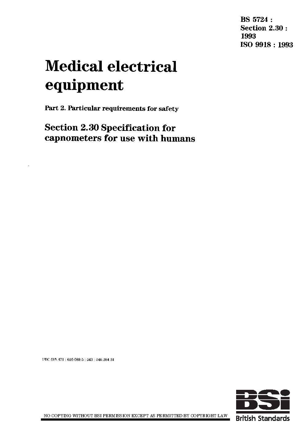 Medical electrical equipment. Capnometers for use with humans. Particular requirements
