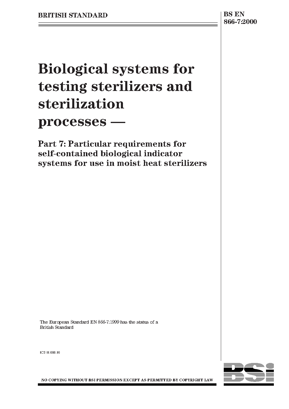 Biological systems for testing sterilizers and sterilization processes Particular requirements self-contained biological indicator use in moist heat
