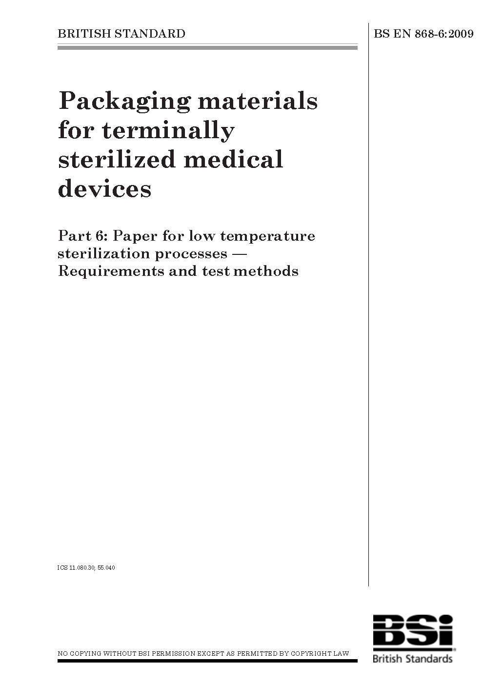 Packaging for terminally sterilized medical devices Paper low temperature sterilization processes. Requirements and test methods