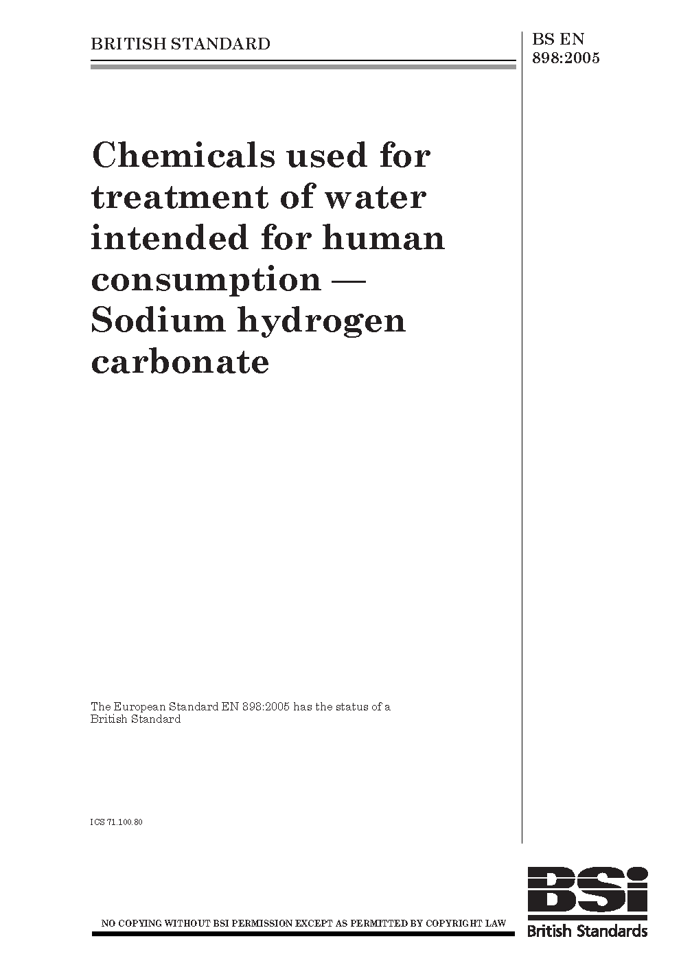 Sodium bicarbonate;Potable water;Chemical composition;Water treatment;Additives;Impurities;Physical properties of materials
