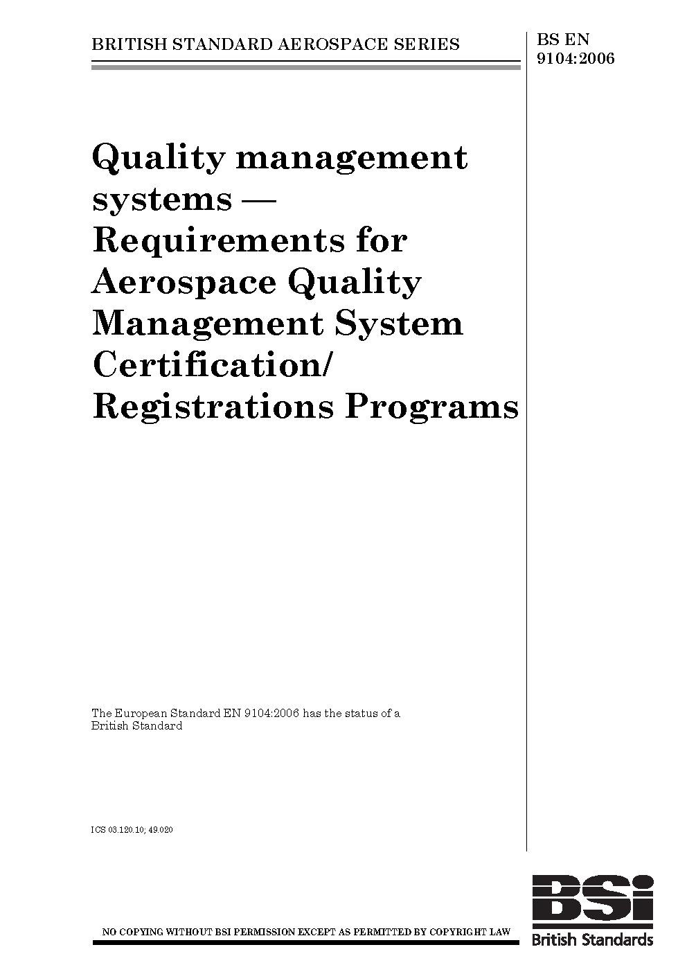 Aerospace series. Quality management systems. Requirements for aerospace quality management system certification/ registrations programs
