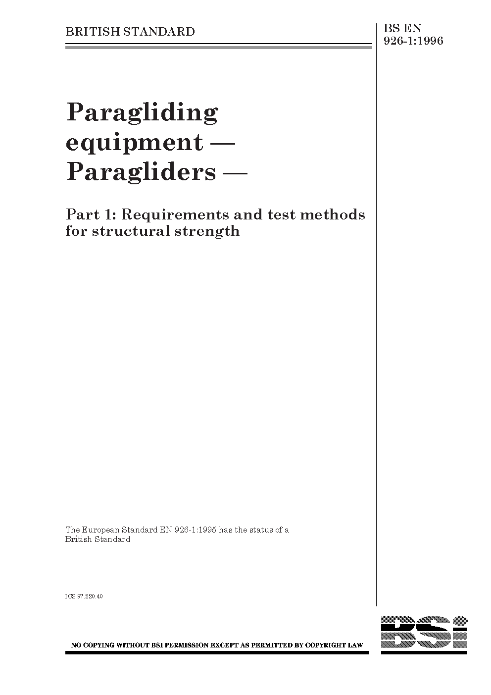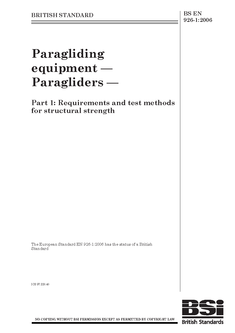 Paragliding equipment. Paragliders Requirements and test methods for structural strength