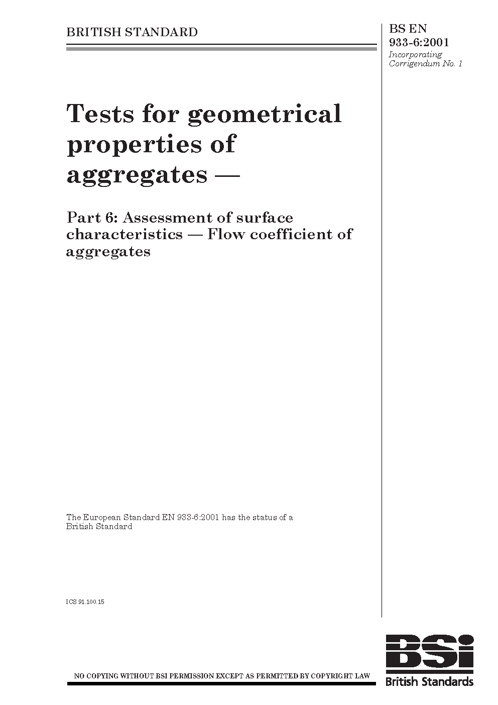 Tests for geometrical properties of aggregates Assessment surface characteristics. Flow coefficient